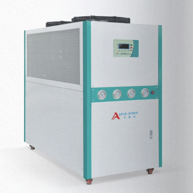 风冷式采用翅片式冷凝器,导热快,散热效果佳,无需提供冷却水。可提供5~35°C,低温型更可低至了°C的冰水(温差不超过+1°C),压缩机功率从3HP~50HP,制冷量能力可达7800~128500 Kcal/hr.
